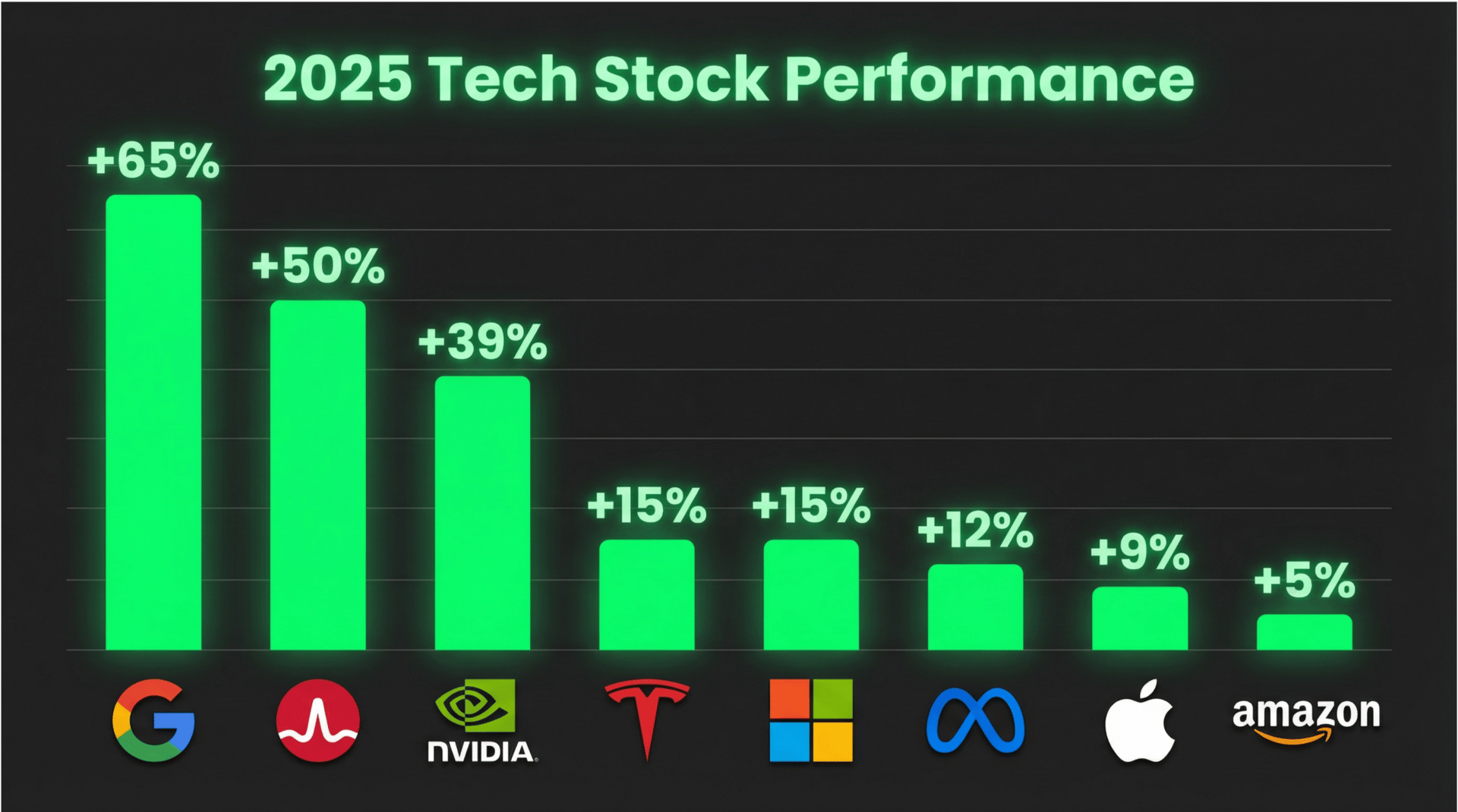 After a turbulent start to the year, Alphabet (GOOGL) emerged as 2025's biggest winner among trillion-dollar tech giants, surging 65% β its strongest performance since it doubled during the 2009 financial crisis recovery.