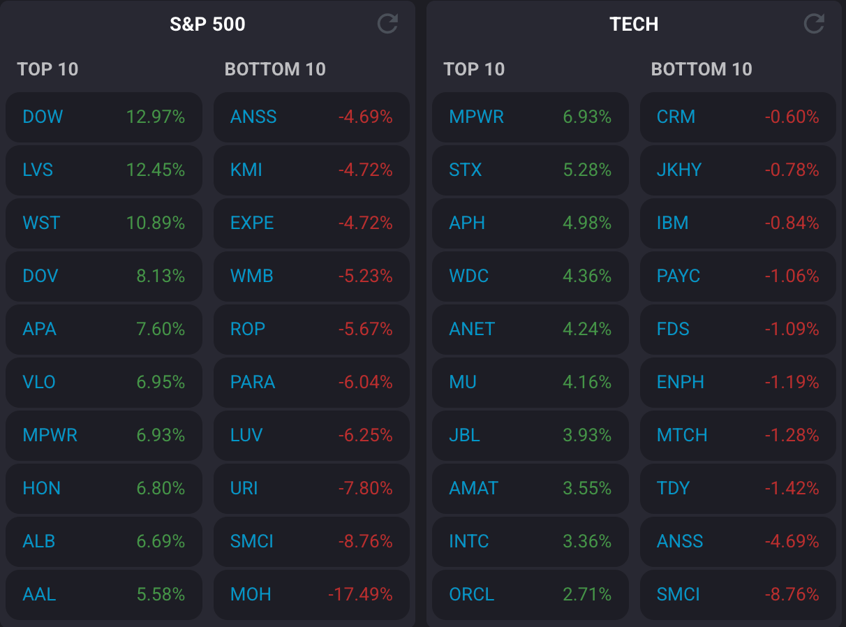 🏨 Honeywell shares jumped 7% after posting better-than-expected quarterly results and lifting its full-year outlook, leading the Dow's advance.