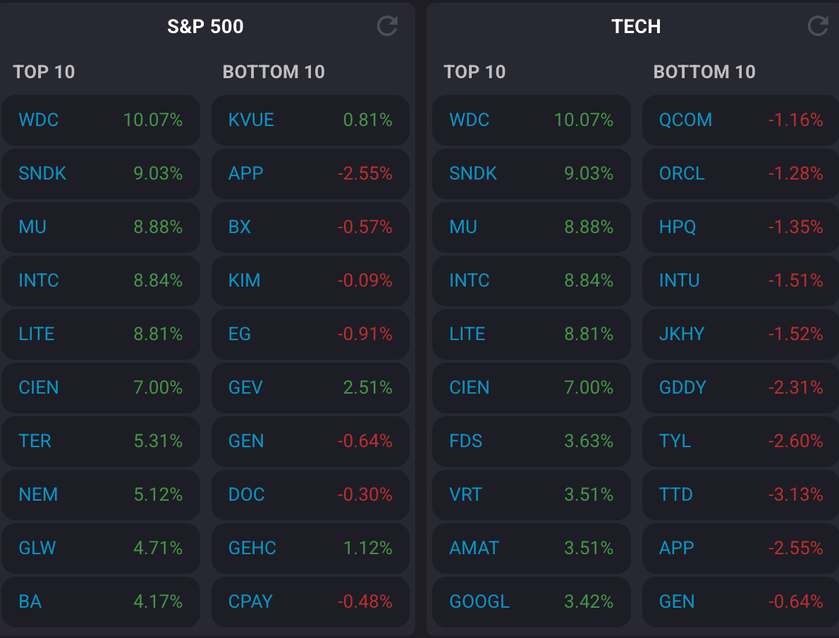 S&P 500 | 6,575.32 | 🔺 0.72% | 🔻 0.8% |