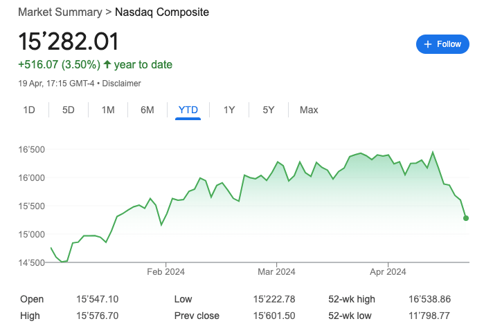 Nasdaq Composite @ 15,282.01 ( ⬇️ 2.05%)
