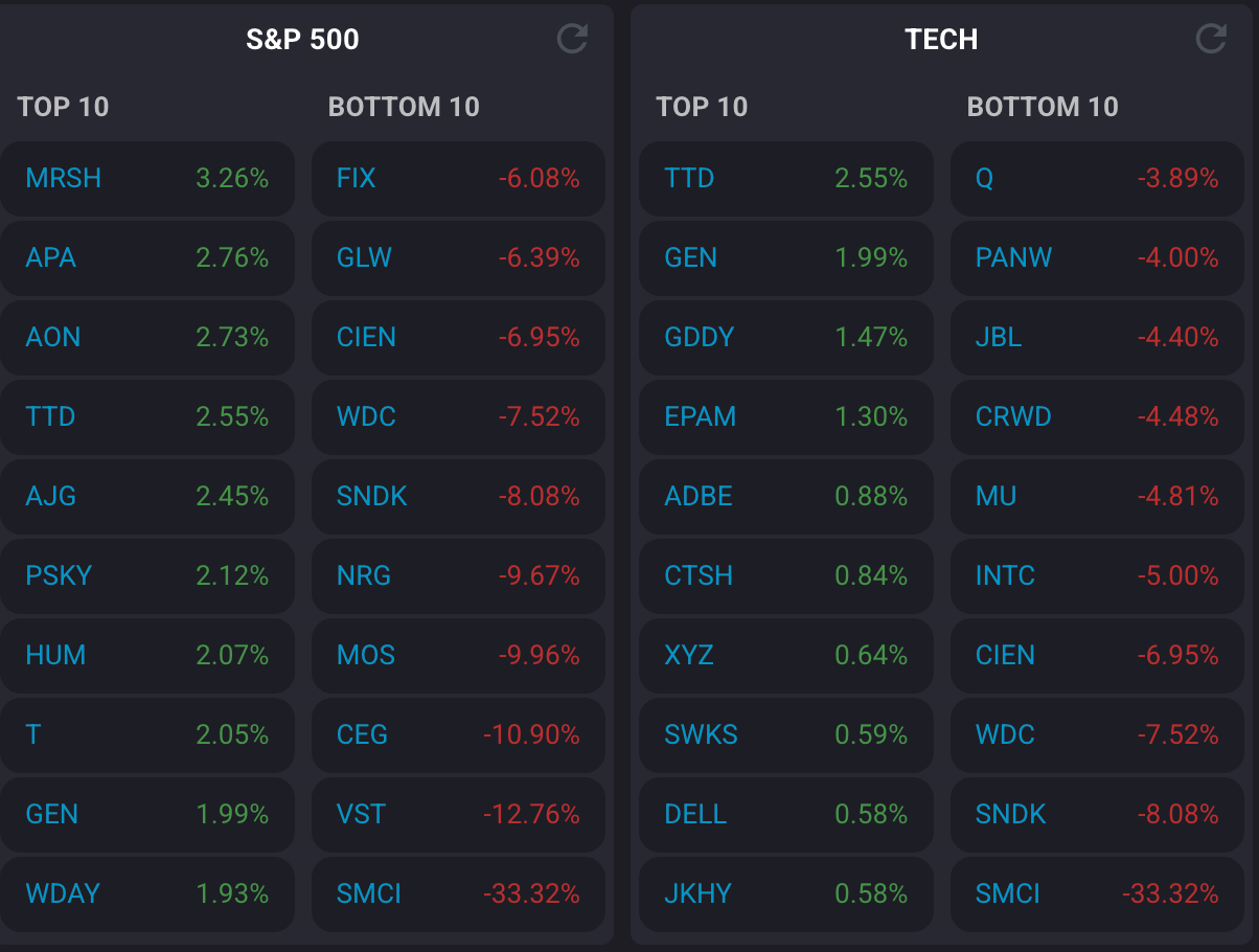 ⚡ LNG exporters surge — Venture Global (+10%), NextDecade (+9%), and Cheniere Energy (+2%) close out a massive week on Middle East supply fears.